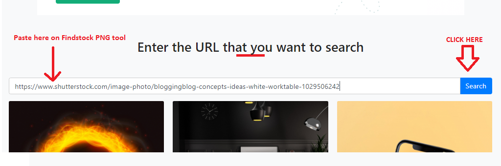 - Paste the image URL in the search bar of the Find stock PNG tool and click on the SEARCH. Find Stock PNG tool will display the exact image you are looking for