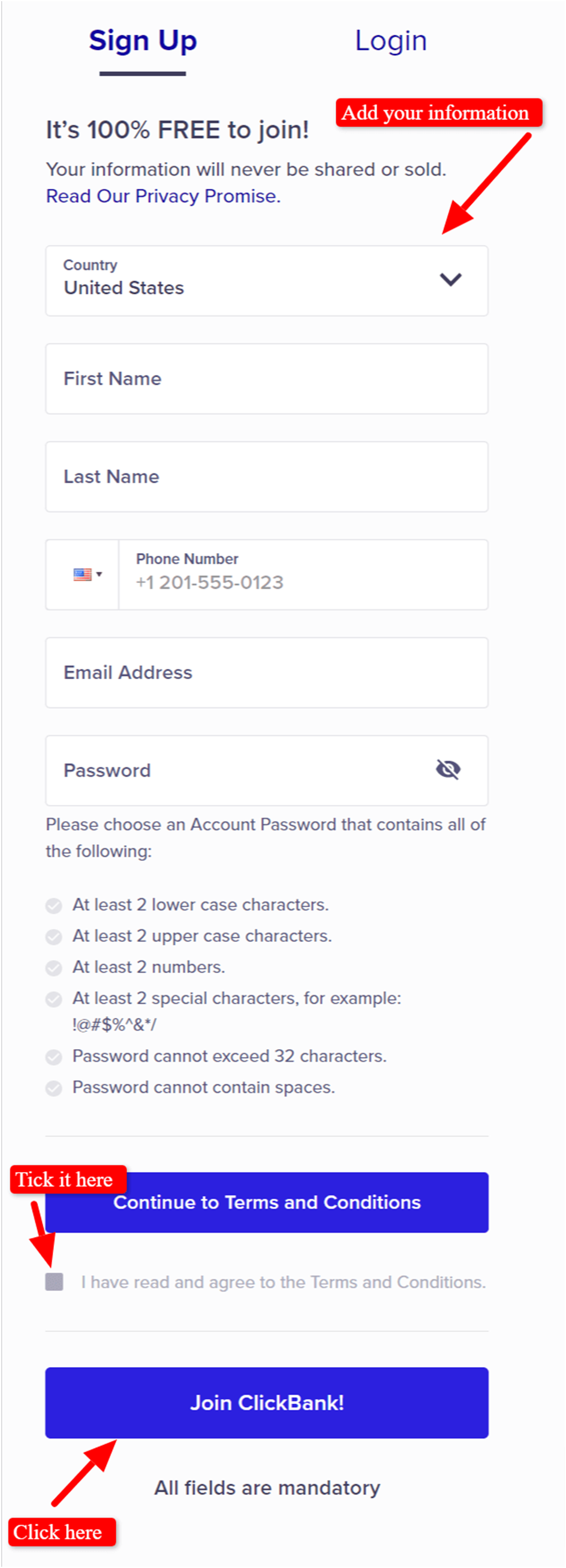 Step 2 – Fill in your information there and click on the join Clickbank button.