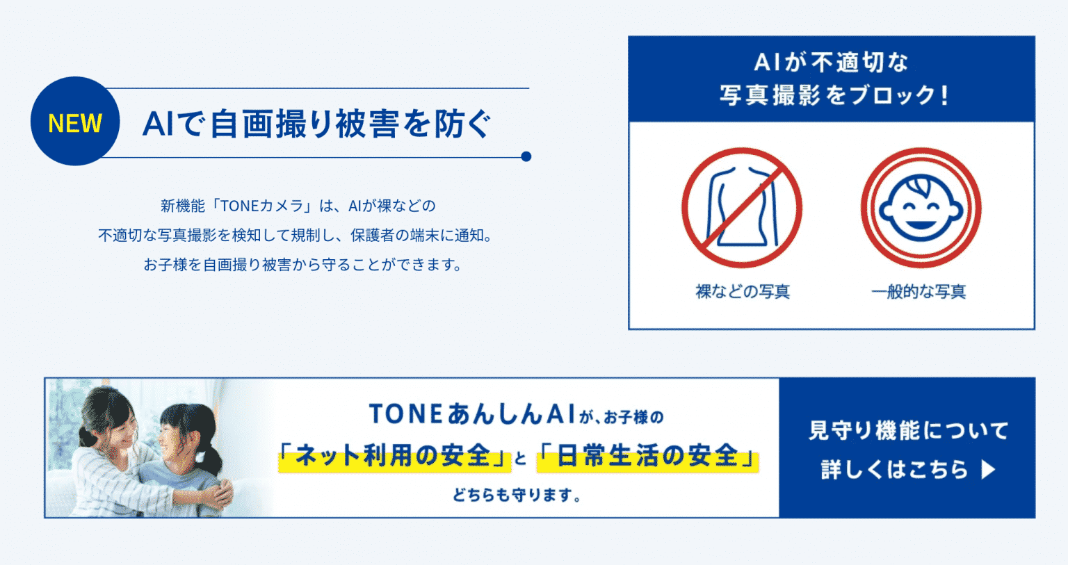 The phone is designed to protect Japanese minors. The e20 advertisement clearly shows that the company focuses on parents who want to protect their children. Parents can also be alerted as soon as their child takes a possible nude photo.